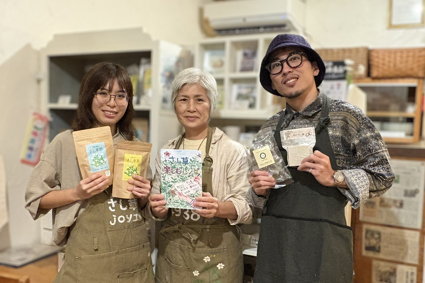 「お客様はお店に来ると、『さし草って食べられるの?』『さし草って厄介よね〜』という会話から始まります(笑)。小さなカフェなので、お客様との距離が近く、話しかけられやすいのがいいですね。私も話しかけやすいですし、見知らぬお客様同士が仲良くなって話し始めて、いつの間にかつながっていって。そんな風景を見るとうれしいですね」と微笑みます。