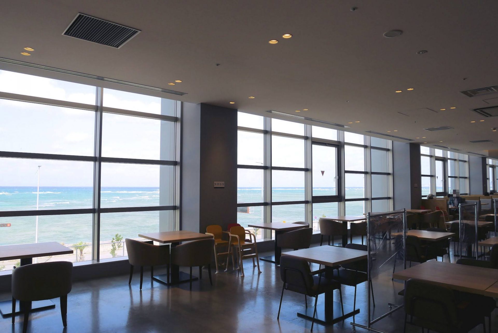 2階には12店舗が入るフードコート「FOOD HALL」があり、沖縄料理からデザートまで様々な店舗が並んでいます。さらにこちらでは、大きな窓越しに海を眺めながら食事ができるのも嬉しいポイント。