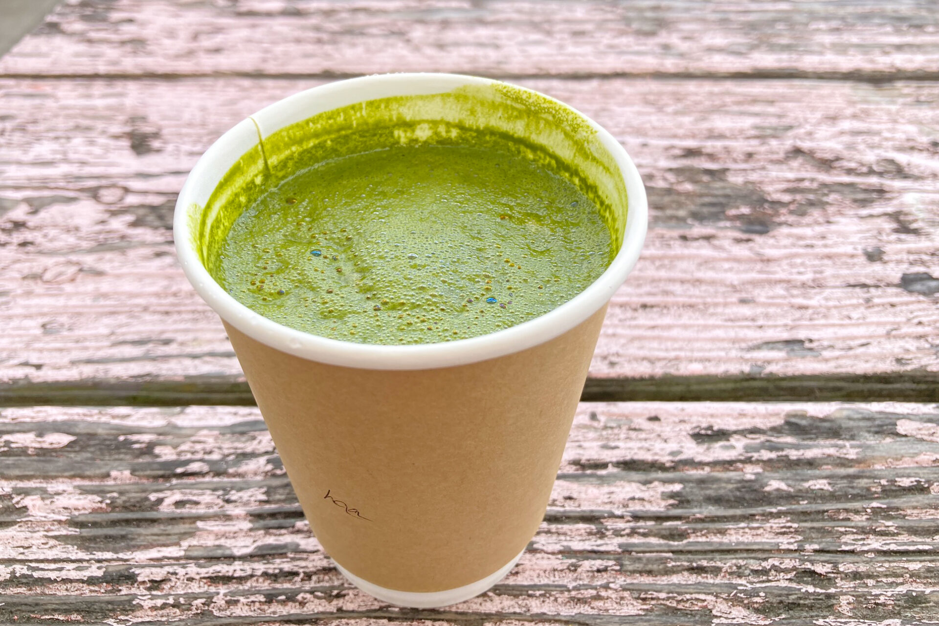 「有機抹茶黒蜜ラテ」は、抹茶と黒蜜と「有機抹茶」入り。この豪華さでこのお値段は感動モノです!抹茶の苦みと黒蜜のほんのり甘さが美味。