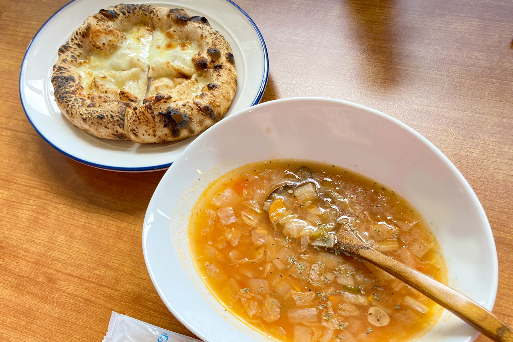 モーニングではスープ&ピザが800円で楽しめるお得な「モーニング&ブランチ限定メニュー」があるので、朝活に是非。