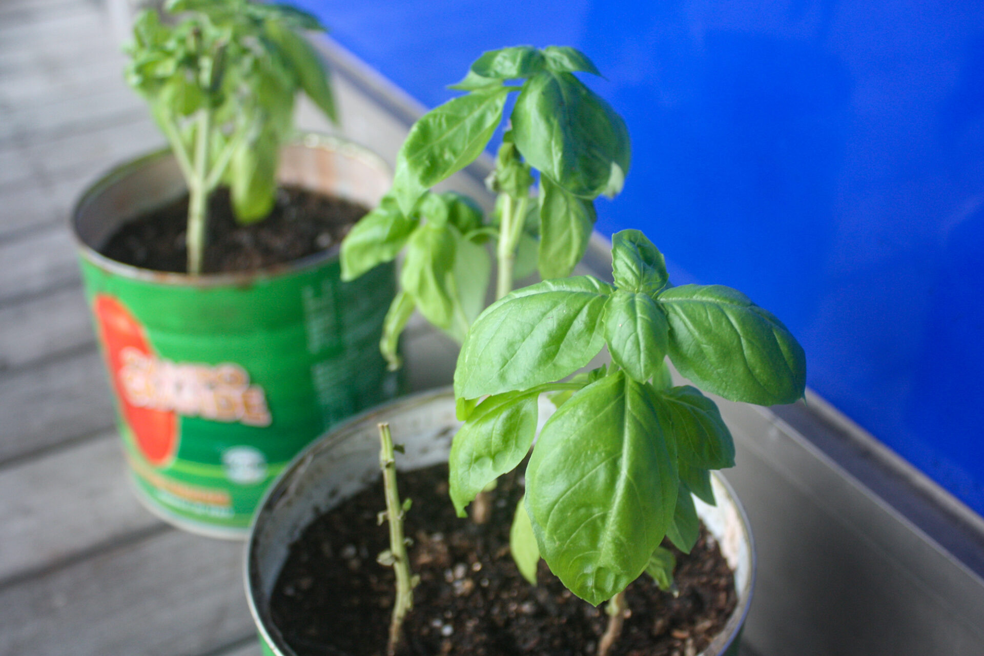ピザに使用しているバジルは自家菜園のバジル。泊港から吹く風の恵みを受けて潮風仕込み。プランターはお店で使っているイタリア産のトマト缶。夕方近くになると、店じまいならぬプランターじまいの姿を見せました。