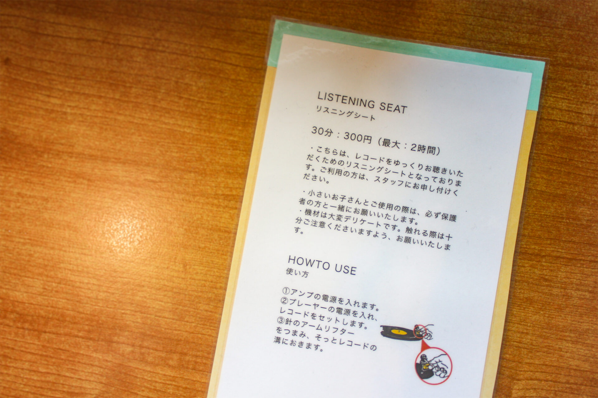 店内では前泊さんが選び抜いたレコードとオーディオを使用したBGMが流れ、レコードを試聴できるリスニングシートも。