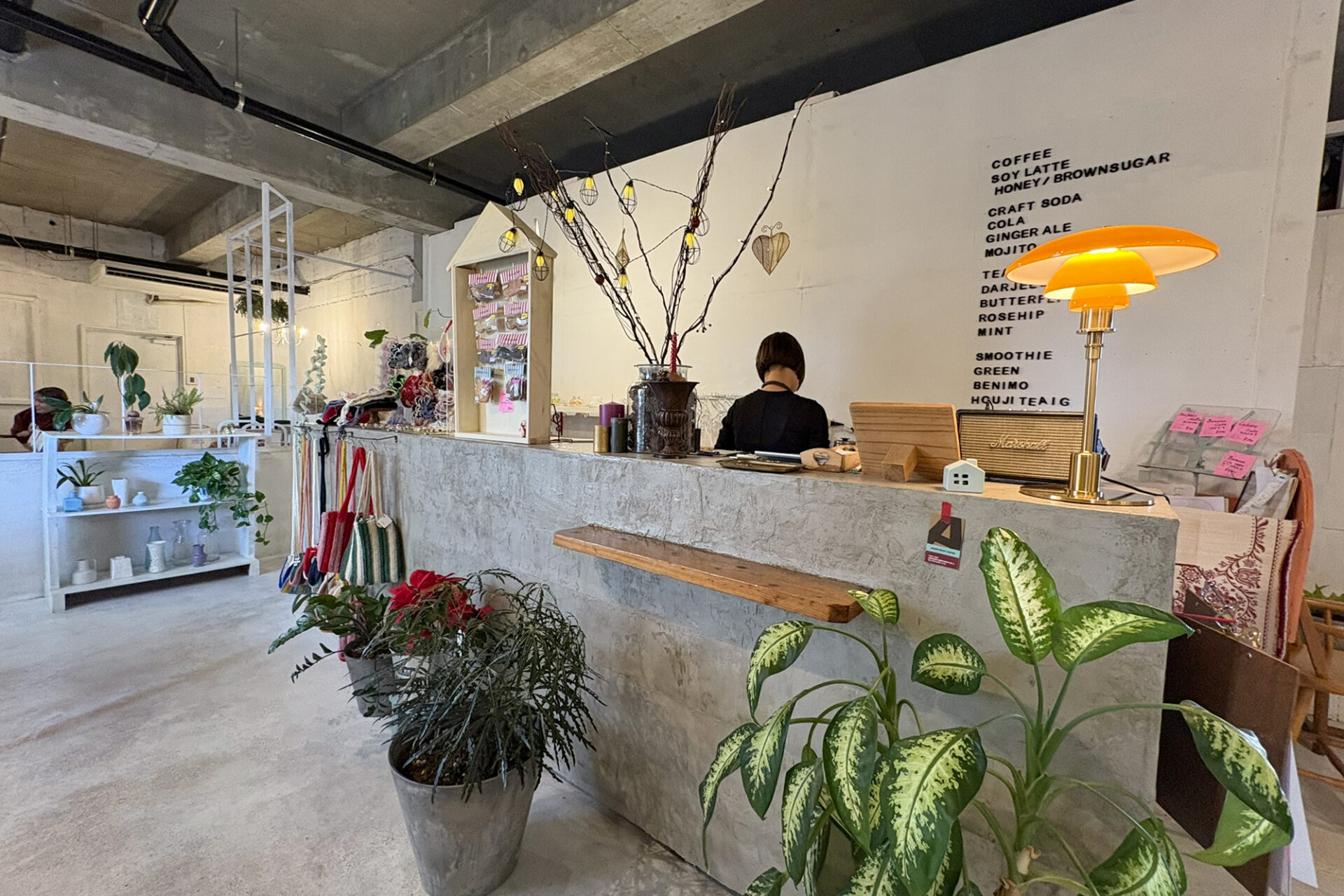 セルフリノベーションで改装したという店内。壁や店内の色、インテリアや家具に至るまで瑞慶覧さんがひとつひとつ大切に選び作り上げてきたこだわりが感じられます。