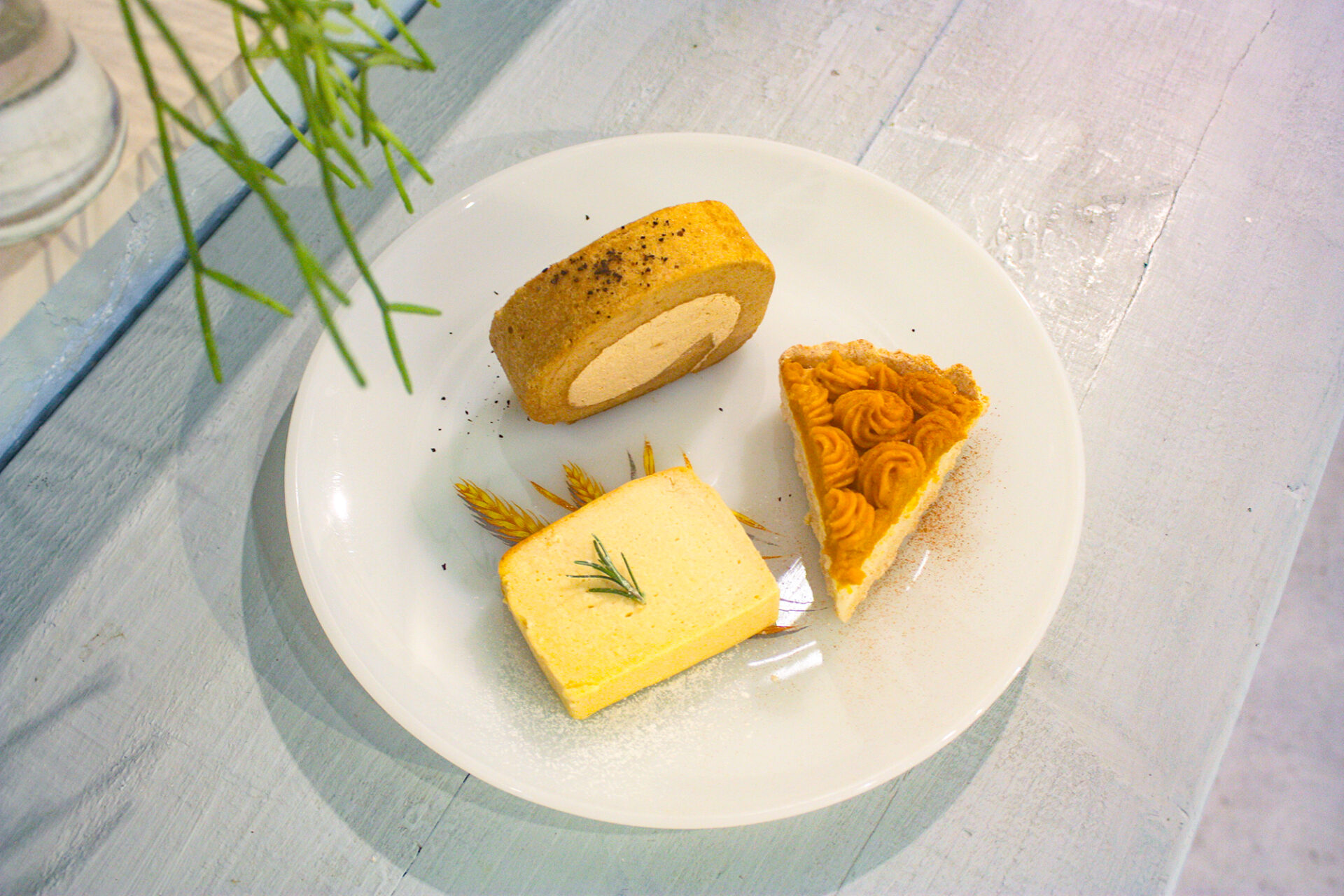 3種類のケーキを自由に選べるメニューだったので「パンプキンビーガンタルト」、「ロールケーキ(グルテンフリー)」、「お豆腐チーズケーキ(グルテンフリー)」をチョイス。シェアして食べても良さそうな量ですが、ガチマヤーの筆者は1人で完食しました(笑)
