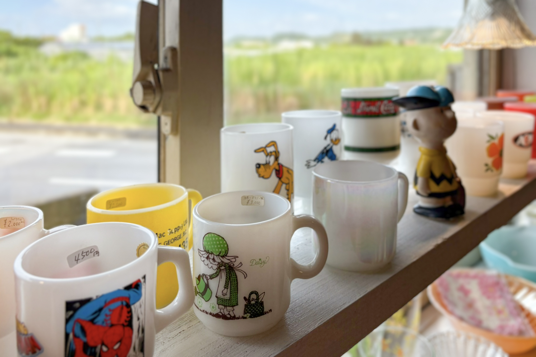 昔なつかしいレトロなカップやキャラクターグッズがそろう雑貨コーナー