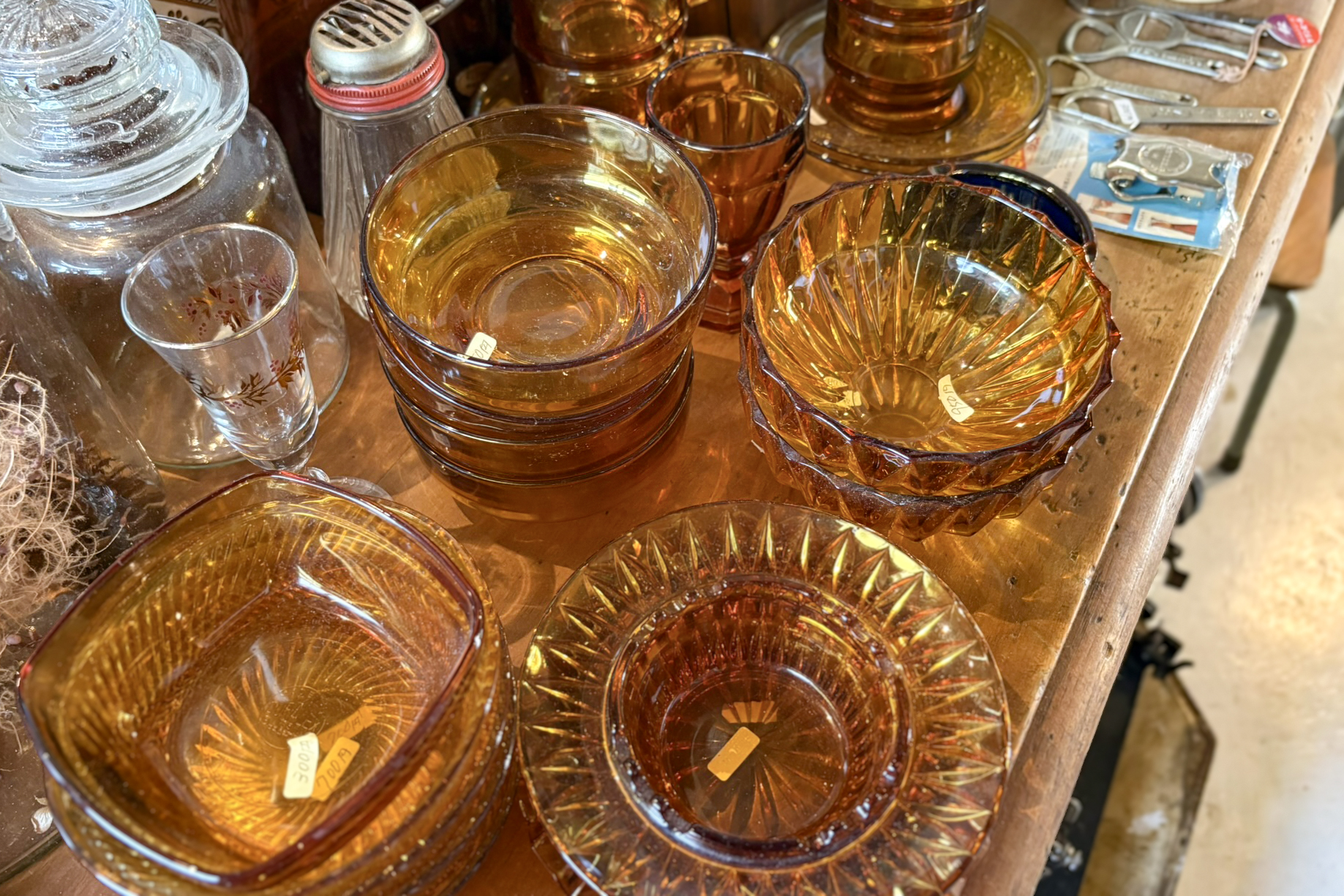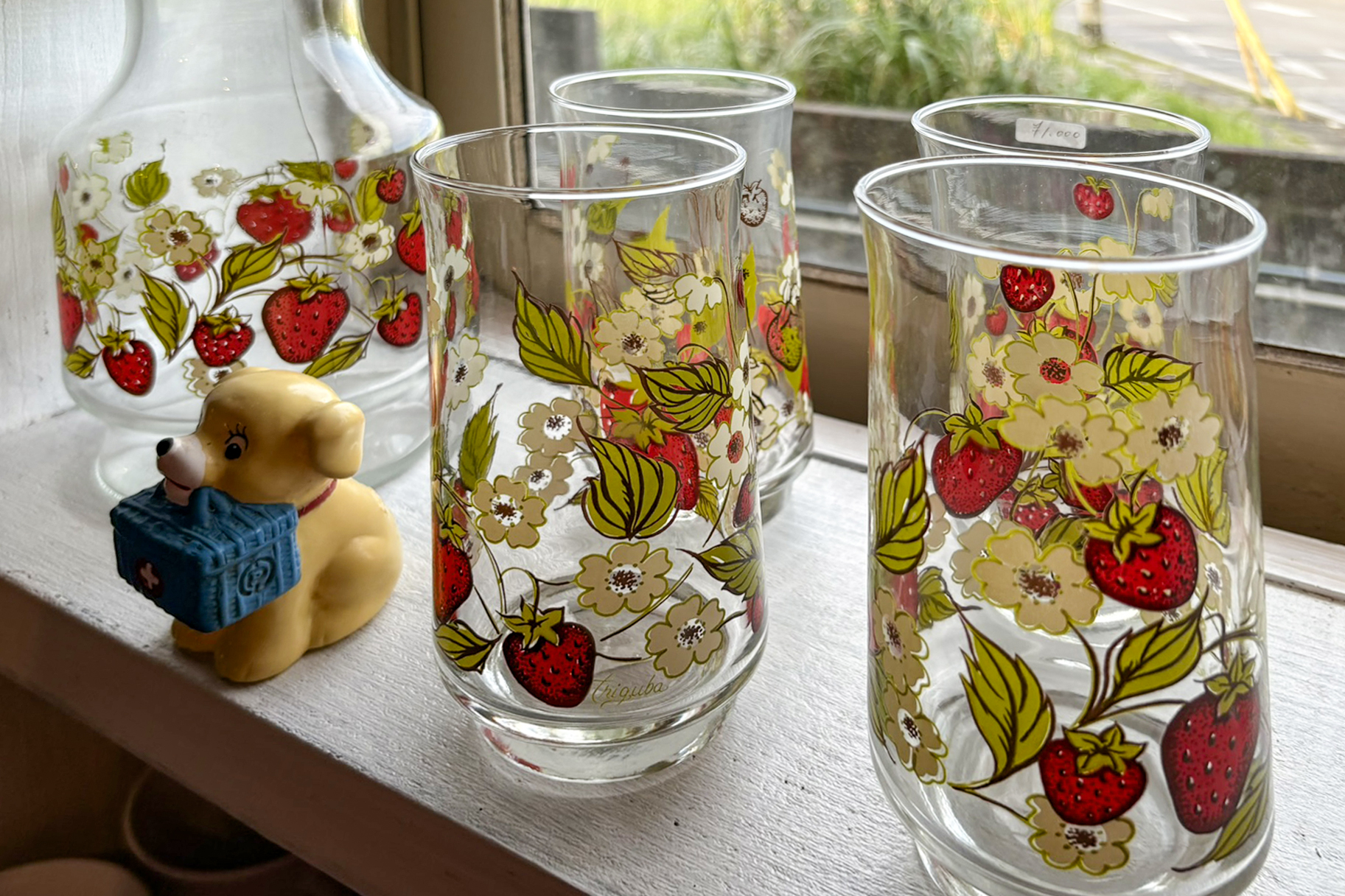 台所雑貨もいっぱい。色使いが今の食器と違っていて、レトロでやっぱり素敵。見ているだけで癒されます。